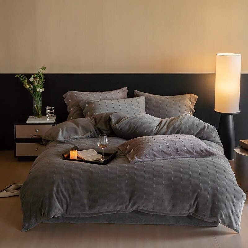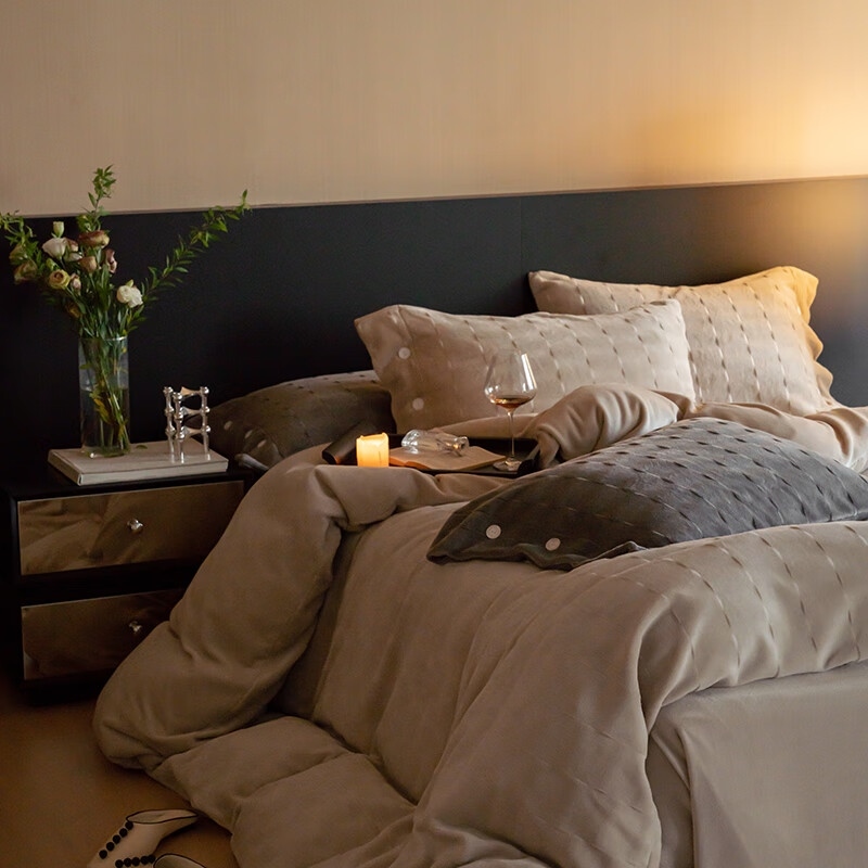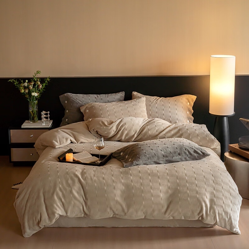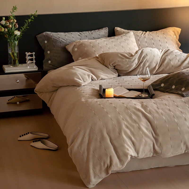 商品名称:保罗彼得PL-T24718(赫拉-奶茶)针织剪花牛奶绒四件套200*230cm