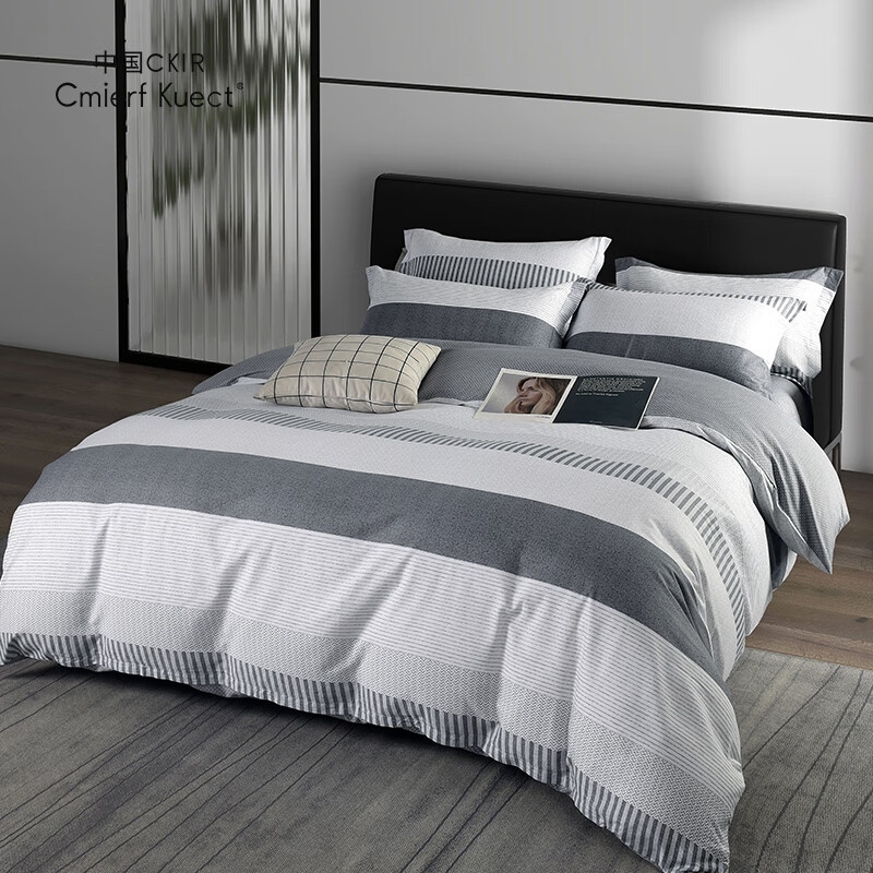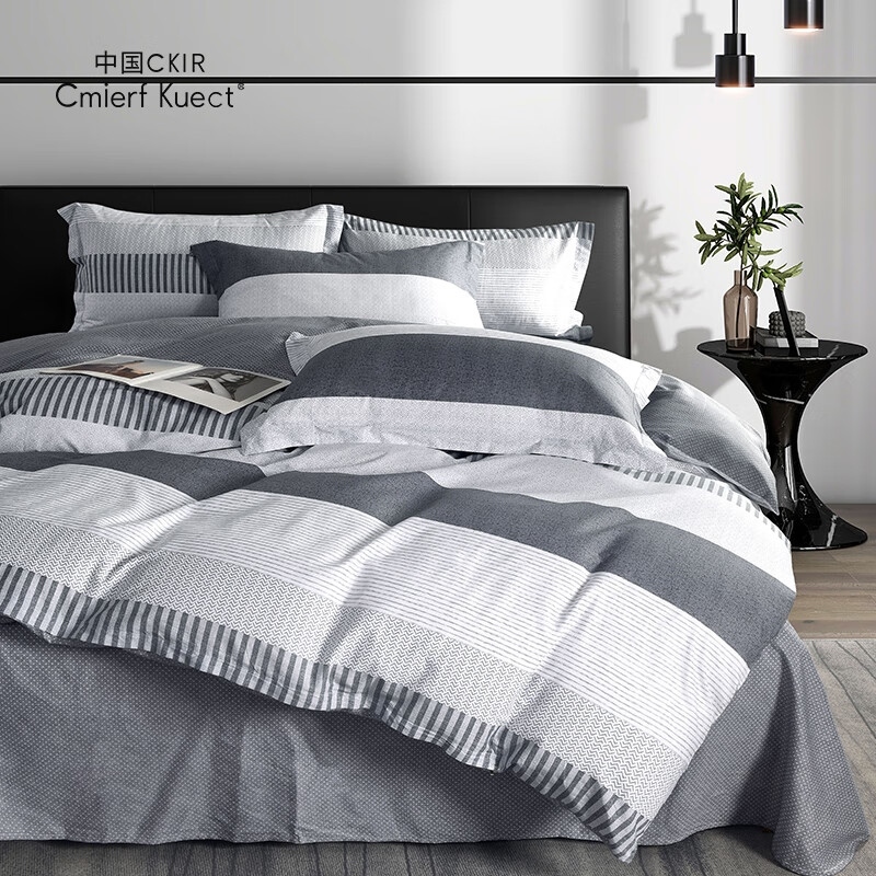 商品名称:中国CKIR Cmierf Kuect烟云雷格全棉四件套CKIR-JF10269灰白条纹