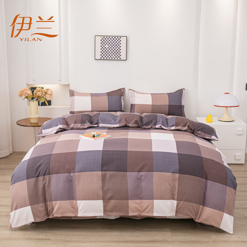 商品名称:伊兰植物羊绒四件套(方格)200*230cmYL-T2450