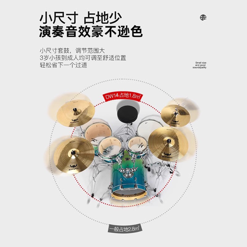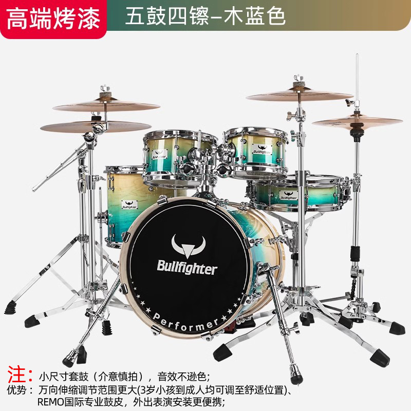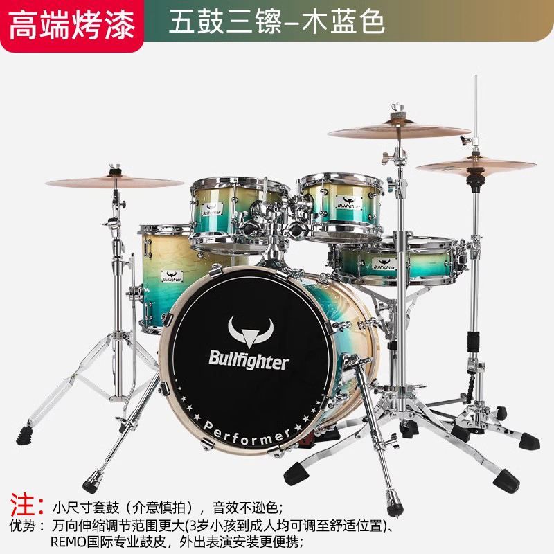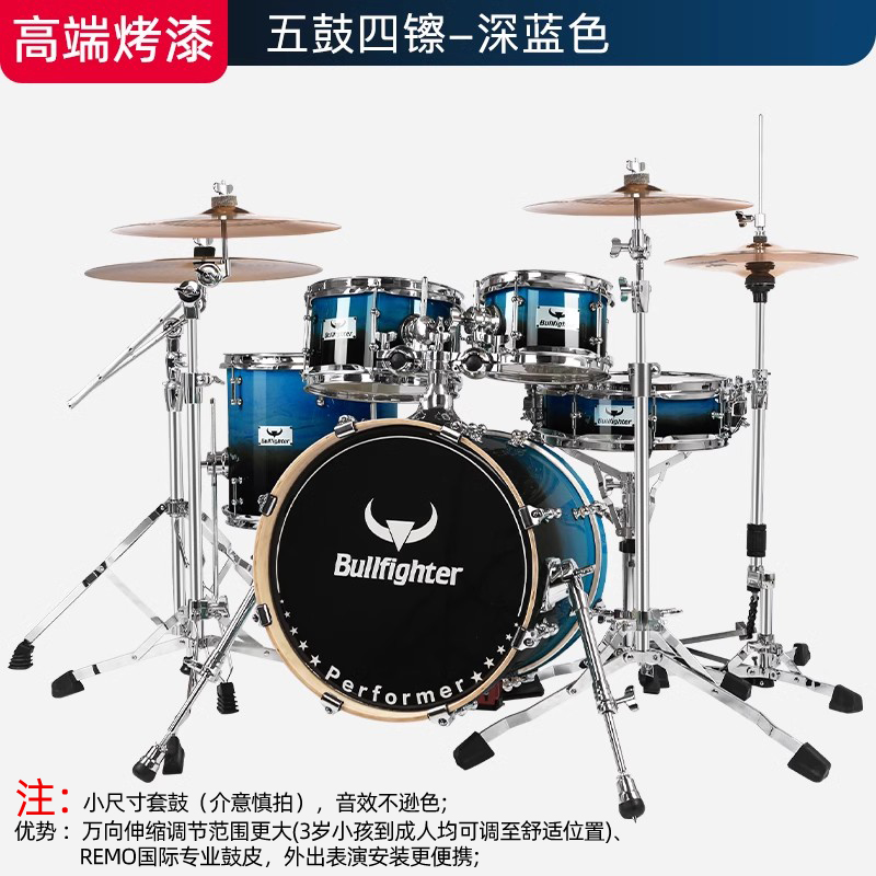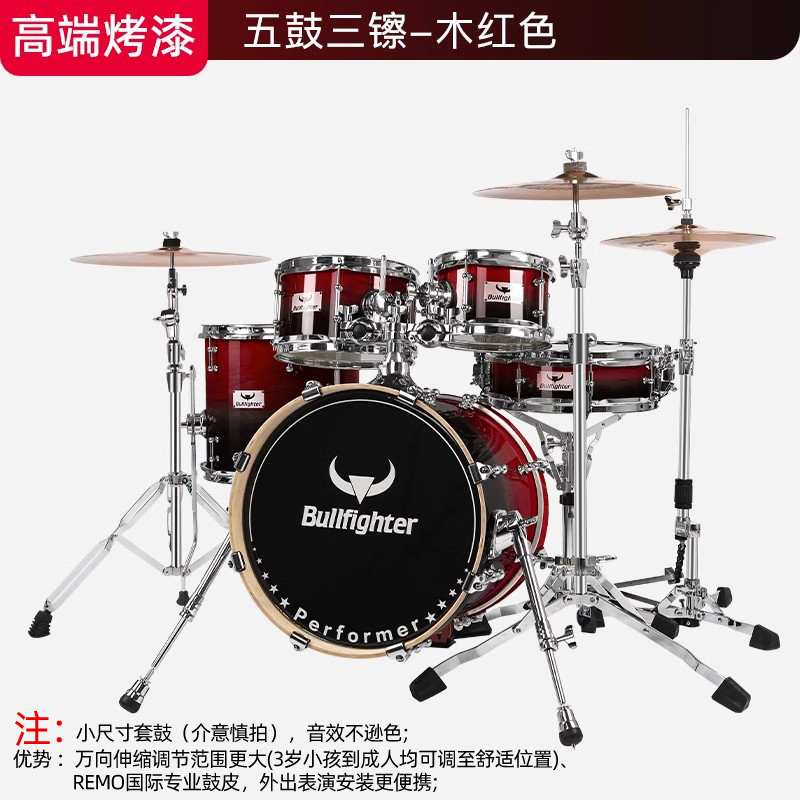 商品名称:斗牛士DW14烤漆架子鼓儿童成人五鼓三镲专业演奏考级家用小爵士鼓