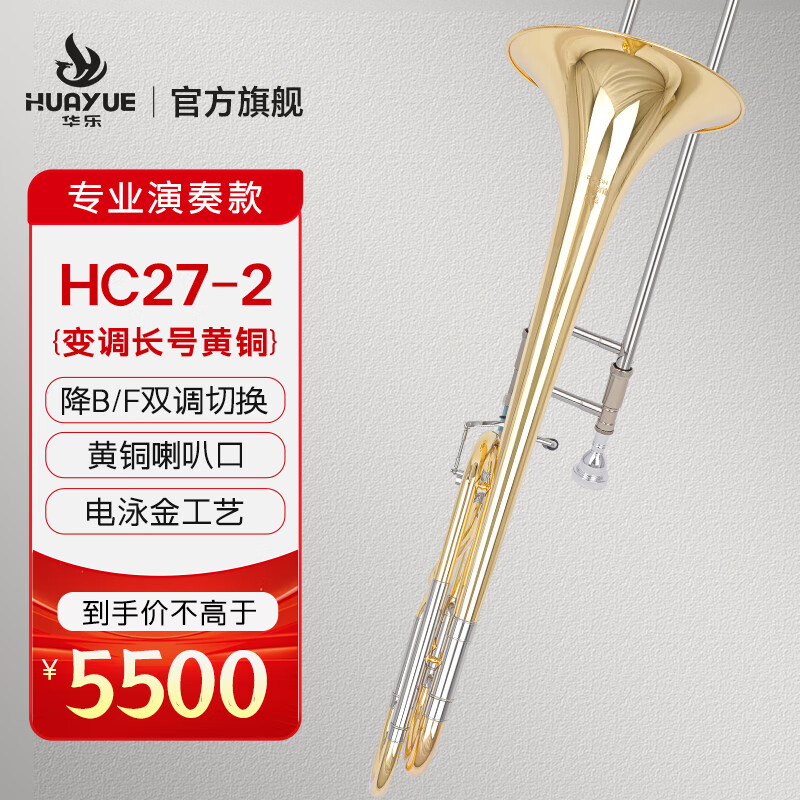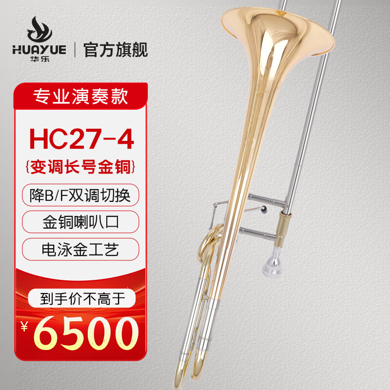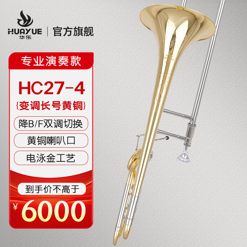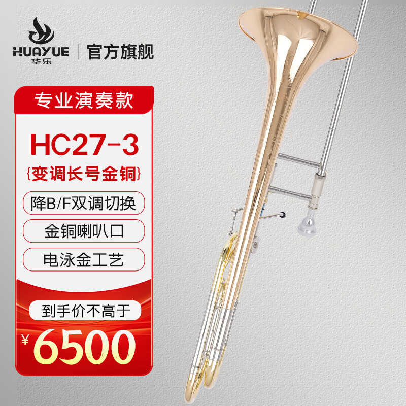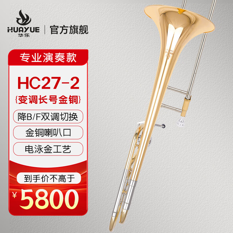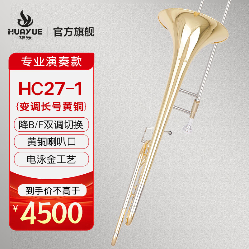 商品名称:华乐长号CH27-1黄铜 金铜初学考级进阶铜管乐通用变调长号 HC27-2 金铜