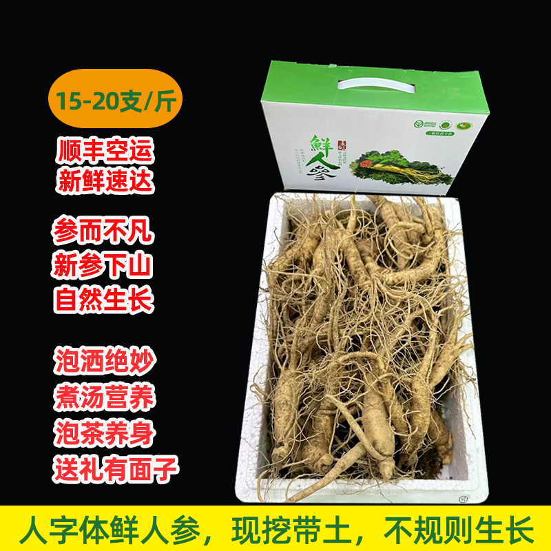 商品名称:礼盒装【顺丰空运】长白山新鲜人参【人字体】泡洒绝妙煮汤营养健身养身送礼