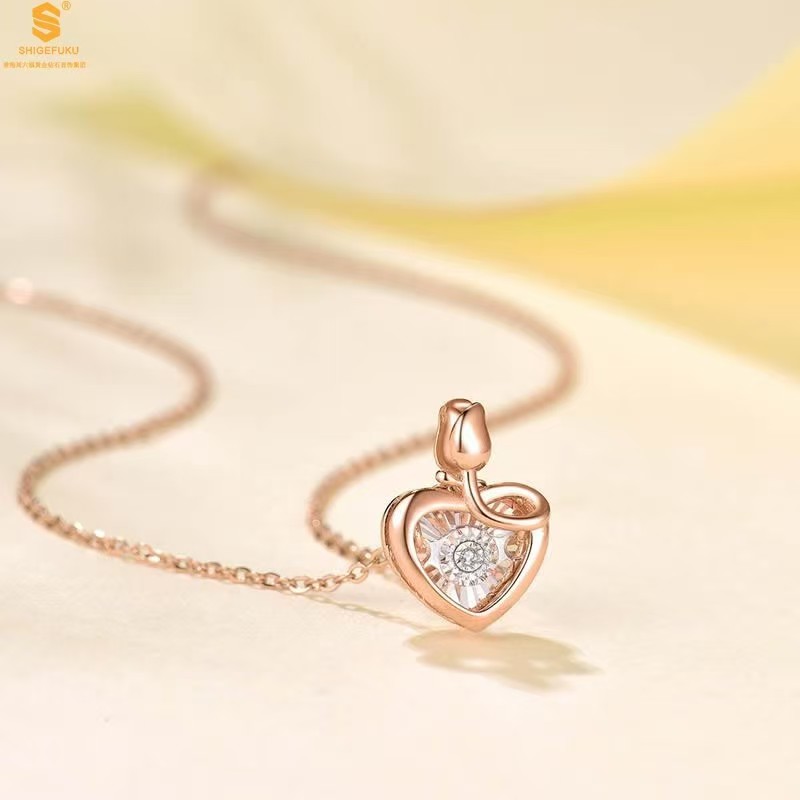 商品名称:香港周六福黄金钻石首饰18K镶钻南非真钻灵动爱心