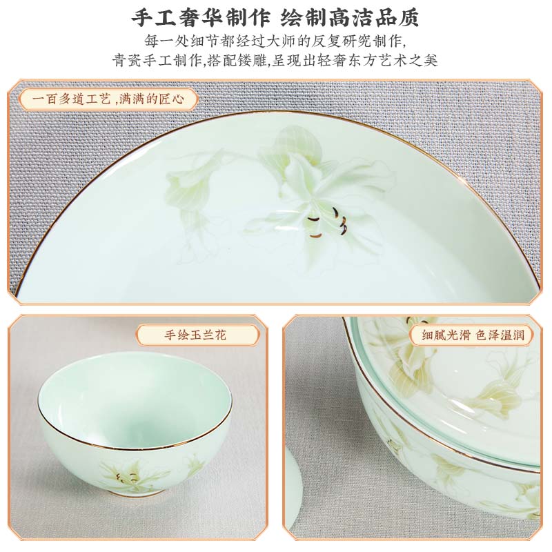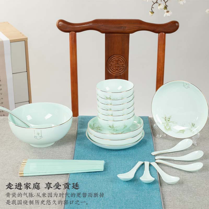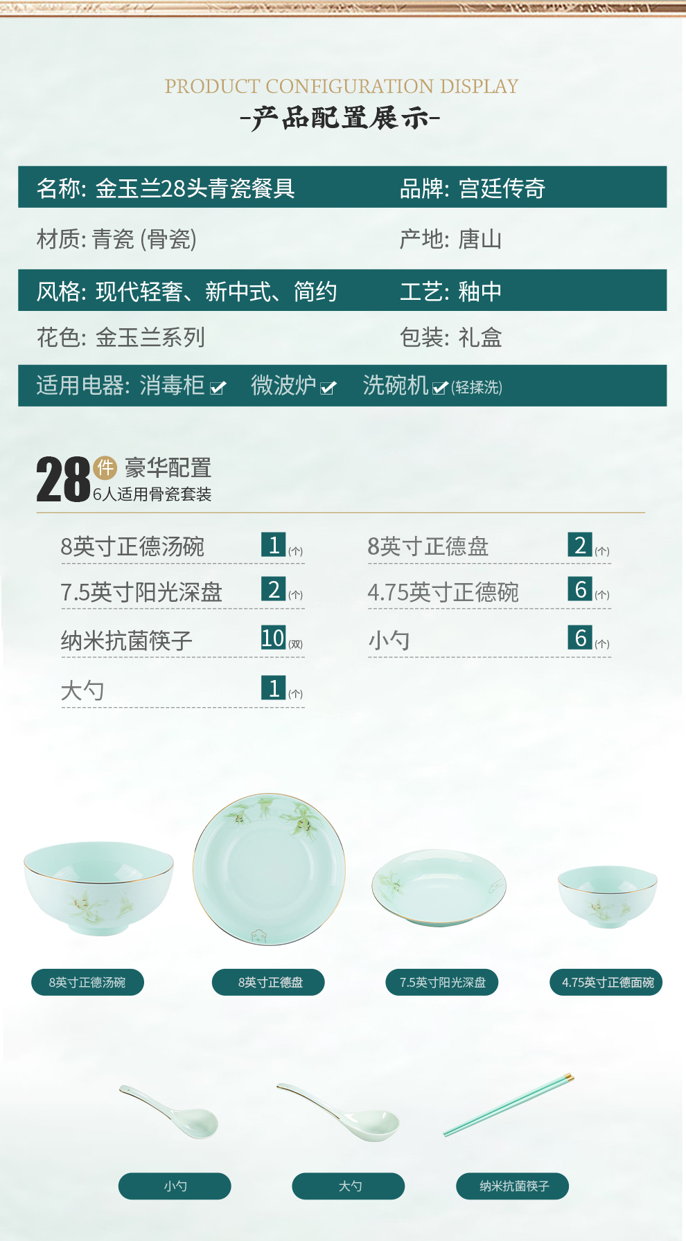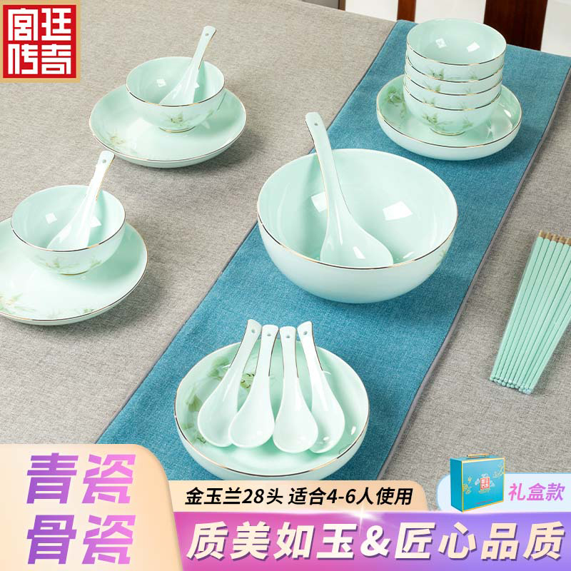 商品名称:宫廷传奇 金玉兰28头青瓷餐具 GT-YL28T 骨瓷(青瓷)加入天然玉料,健康环保无铅抗菌