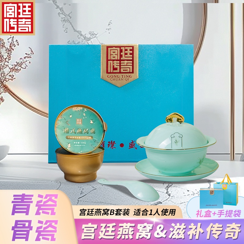 商品名称:宫廷传奇 宫廷燕窝B套装 GT-YW02 骨瓷(青瓷) 加入天然玉料,健康环保无铅抗菌
