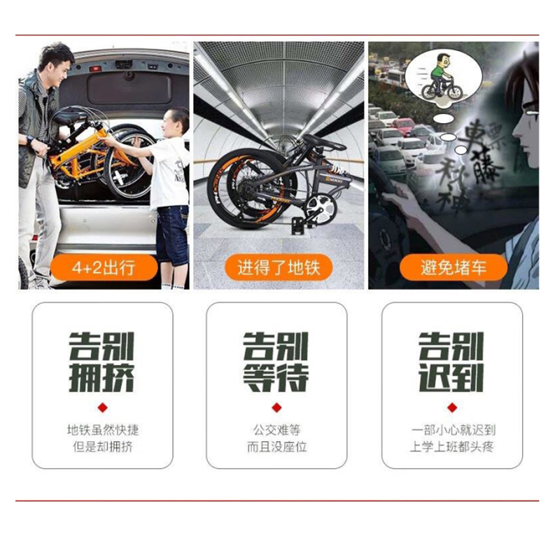 商品名称:凤凰 20寸单速折叠自行车-路雪 黑色