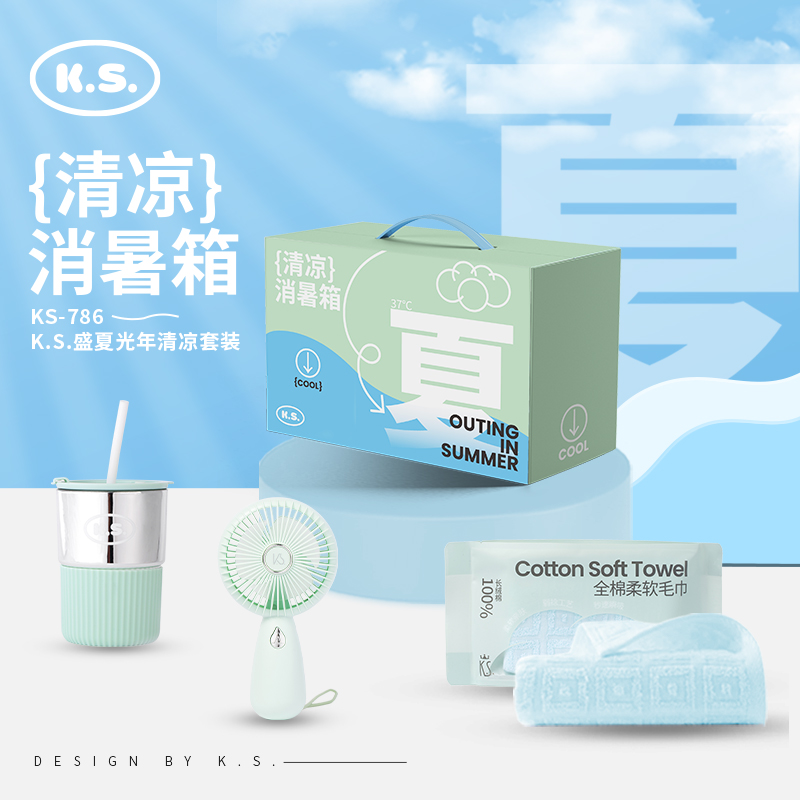 商品名称:K.S.盛夏光年清凉套装 KS-786 杯子毛巾手持风扇
