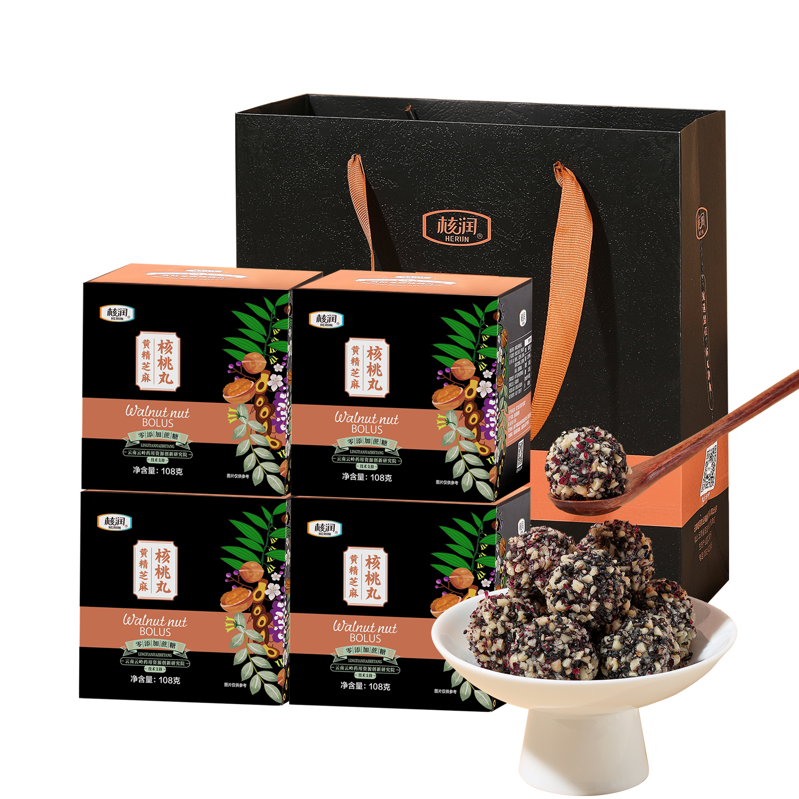 商品名称:核润云南特产黄精玫瑰花核桃芝麻丸休闲零食下午茶糕点108克*4盒