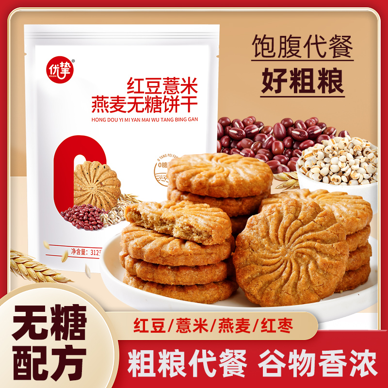 商品名称:【物业地推专用】优挚 红豆薏米燕麦无糖饼干312g*18袋 整箱包邮