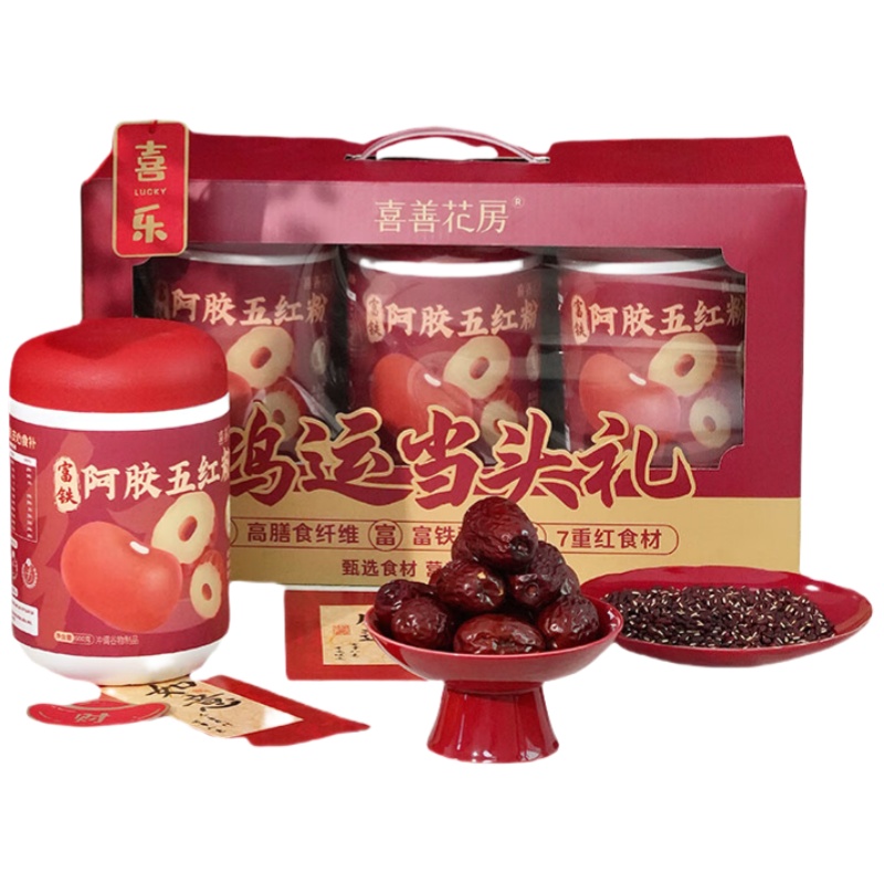商品名称:喜善花房 阿胶五红粉600g*3罐礼盒装