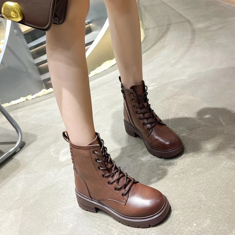 商品名称:万浬马-新款真皮女式系带英伦中跟中筒马丁靴休闲时尚女皮靴短靴女皮鞋