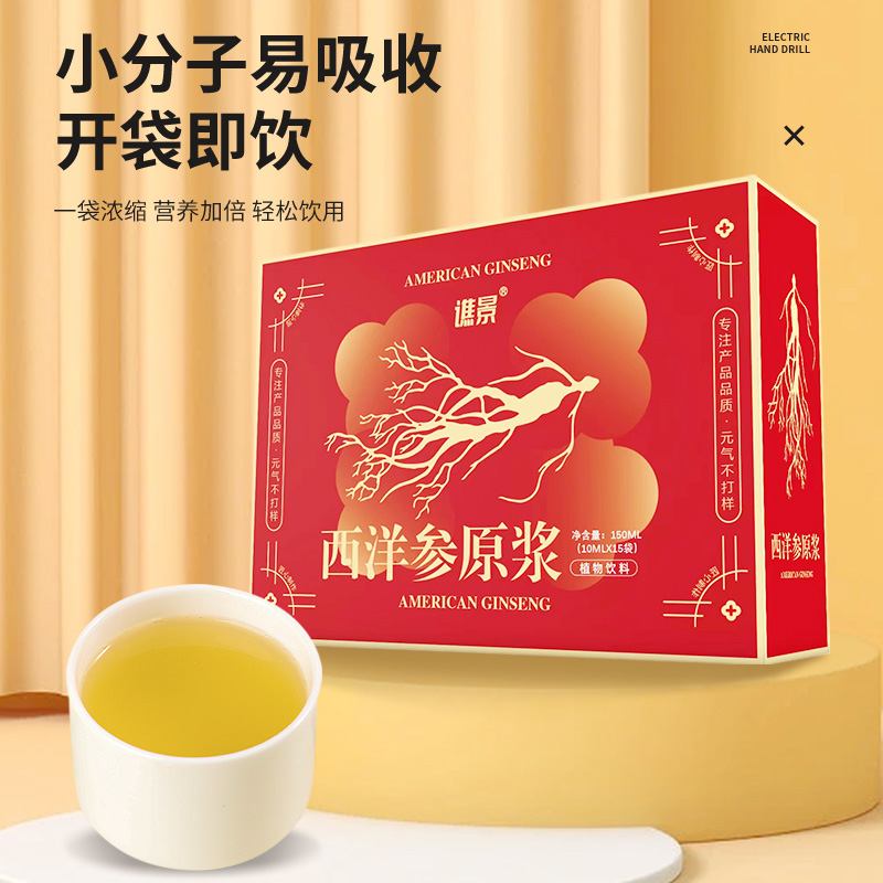 商品名称:僬景 西洋参原浆10ml*15袋/盒 口服液精华原浆浓缩黄金液体提高精力 养肝排毒熬夜加班常备包邮