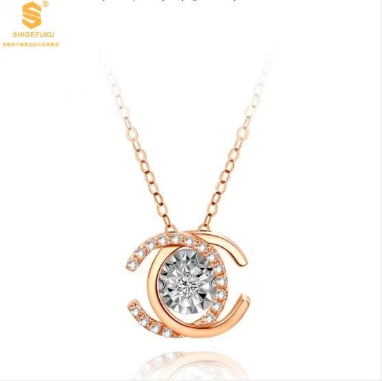 商品名称:香港周六福黄金钻石首饰18K镶钻南非真钻灵动双C项链