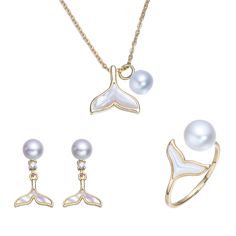 商品名称:OLIVEIRA奥利维拉 珍珠鱼尾珍珠三件套G13合金镀18k金