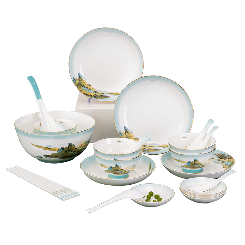 商品名称:德铂(Debo)绿水青山餐具套装陶瓷碟碗勺盘32件套