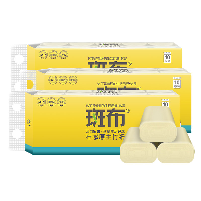 商品名称:斑布(BABO) 本色卫生纸 竹纤维无漂白 BASE系列3层80g无芯卷纸*30卷