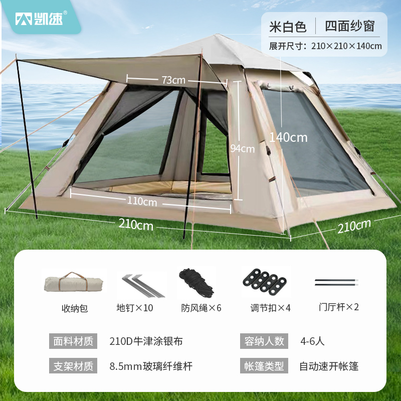 商品名称:凯速帐篷户外便携折叠露营公园野营全自动遮阳棚(容纳4-6人)