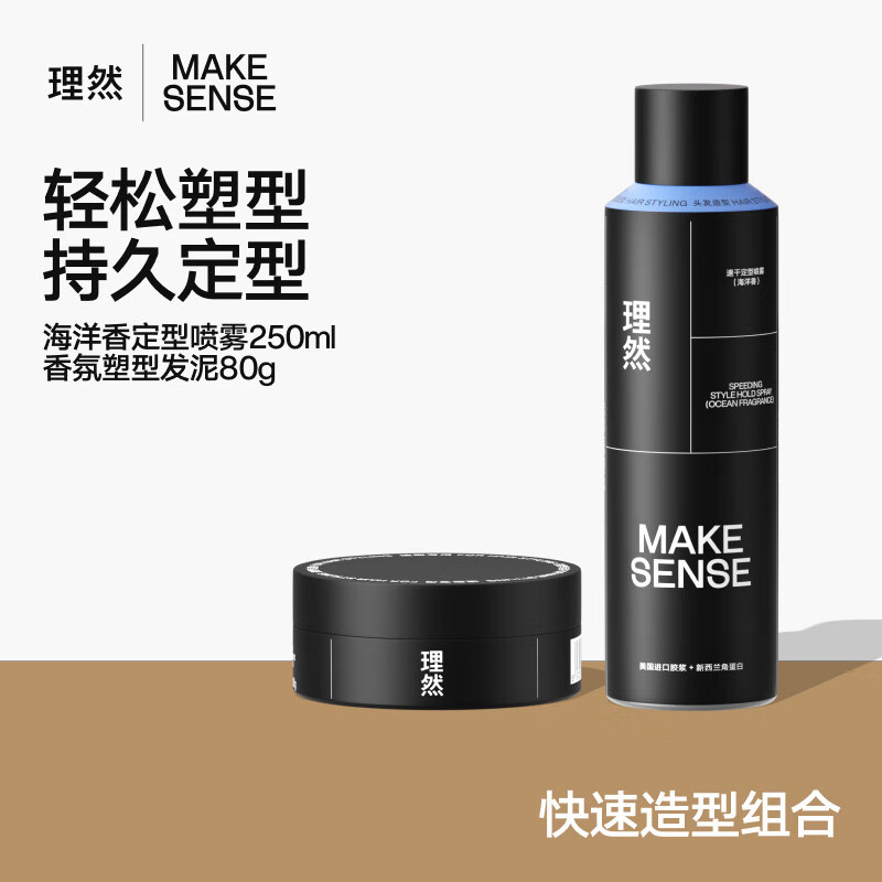 商品名称:理然型男套装造型喷雾(海洋香)250ml+发泥(柏木香80g)