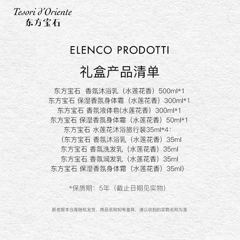 商品名称:东方宝石(GYDF) 水莲花香氛沐浴滋养五件套500ml+300ml YZ0161