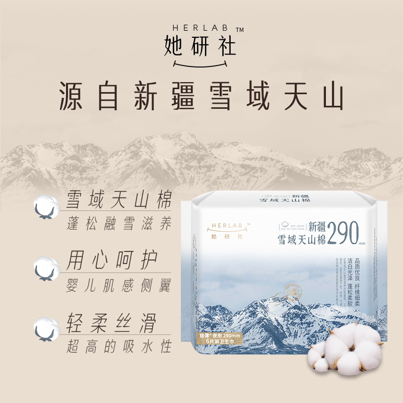 商品名称:她研社(Herlab) 新疆雪域天山棉卫生巾 量多日用 290mm × 6片