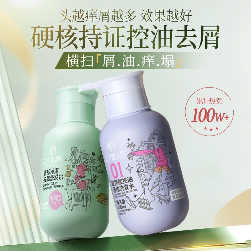 商品名称:三个魔发匠 控油蓬松洗发套装洗发水400ml+洗发水400ml