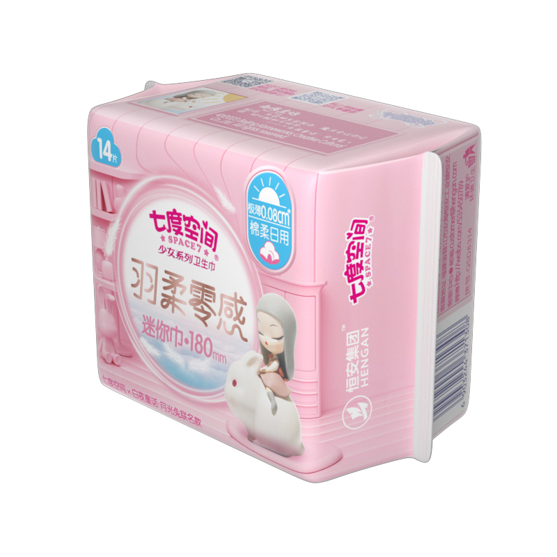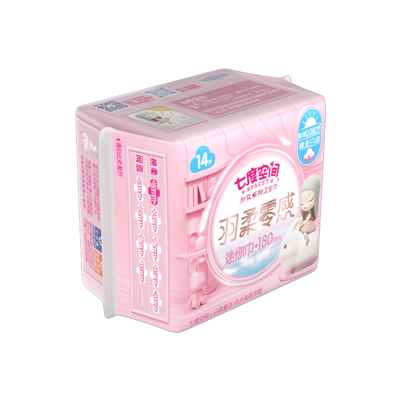 商品名称:七度空间 8QSD8314(包装)少女极薄透气棉柔迷你巾180mm14片装*8包装