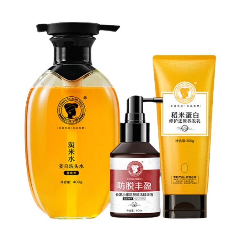 商品名称:长发小寨 淘米水姜乌洗发水(蓬爽型)400g+防脱丰盈60ml+养发乳200g B1624
