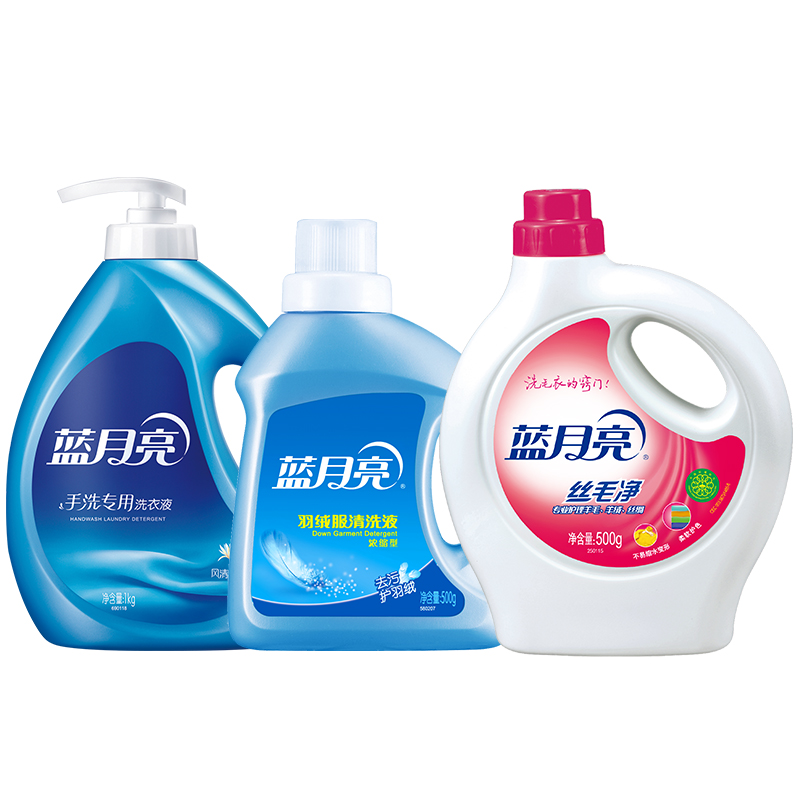 商品名称:蓝月亮 羽绒服清洗液500g+防蛀增艳型丝毛净500g+风清白兰手洗专用洗衣液1kg