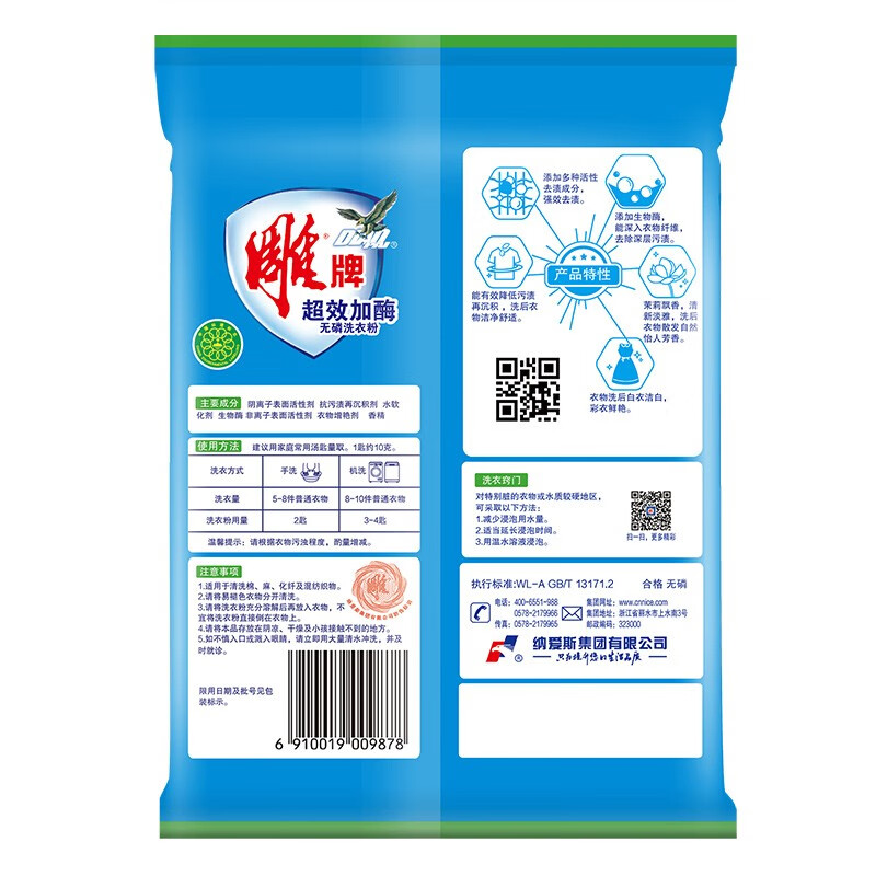 商品名称:雕牌洗衣粉超效加酶强效去渍家用252g 1袋