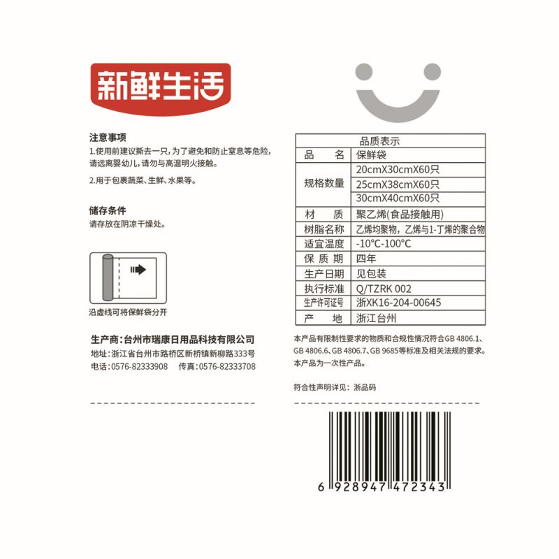 商品名称:新鲜生活(三合一)保鲜袋SH-7234