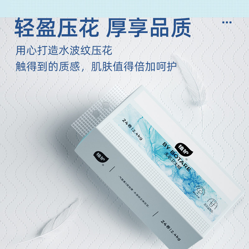 商品名称:【物业推广专用】植护 气垫无芯卫生纸(碎冰蓝系列)115*120/5层 100g 24卷/提*50提