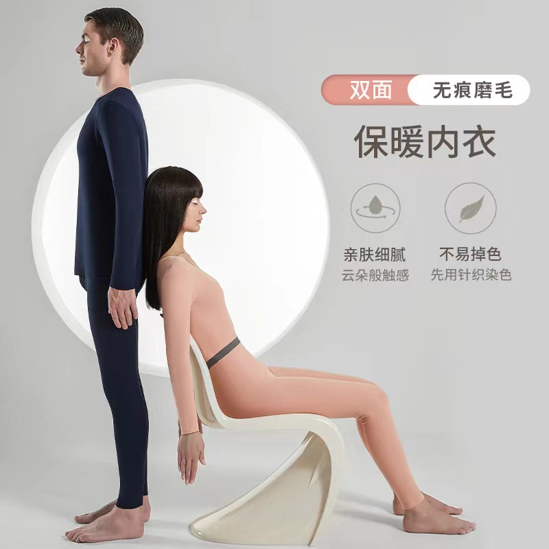 商品名称:尚美狐双面磨毛情侣无痕收腰保暖内衣男女套装 ST003