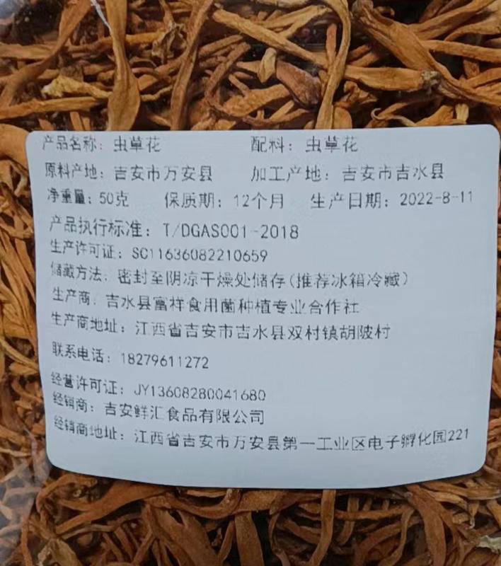 商品名称:虫草花虫草花干货150g克非野生蛹虫草