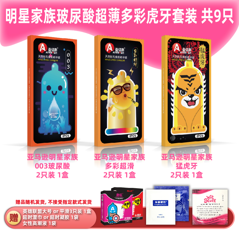 商品名称:明星家族玻尿酸超薄多彩虎牙安全套组合避孕套套装