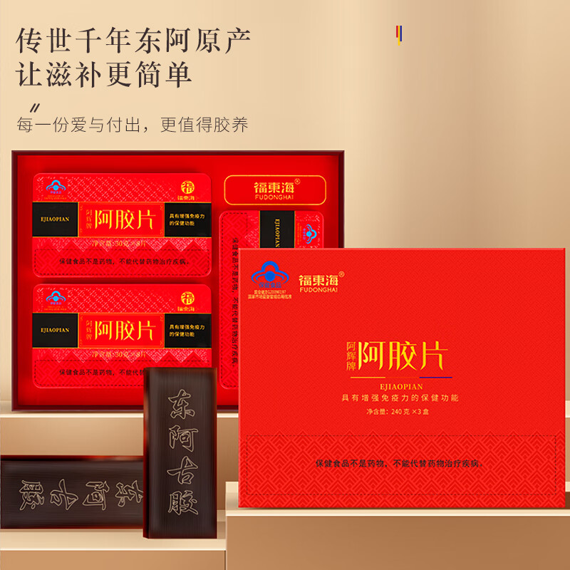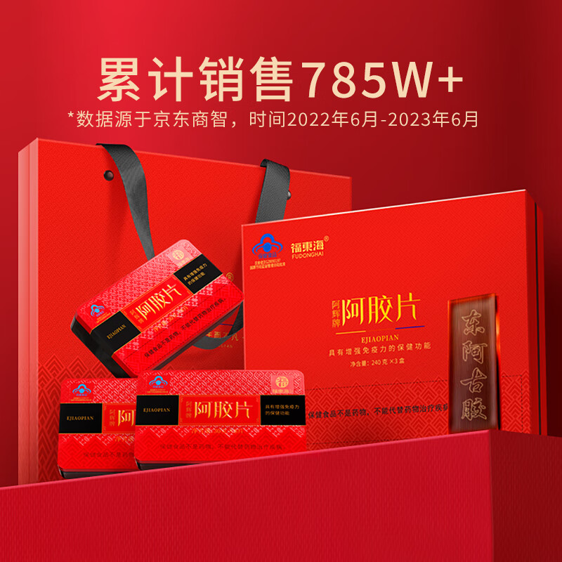 商品名称:【福东海】阿胶片礼盒720克(3盒)/盒 FDH12010038