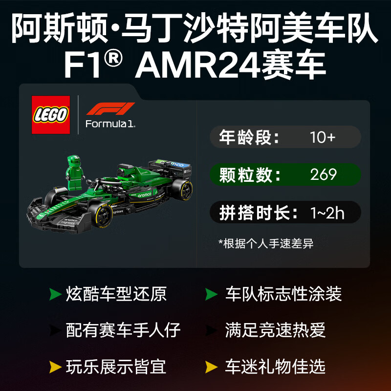 商品名称:乐高 阿斯顿马丁沙特阿美车队 F1® AMR24 赛车 77245