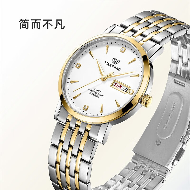 商品名称:天王(TIAN WANG)手表商场同款休闲钢带男士手表商务皮带石英表GS3690T/DD-B