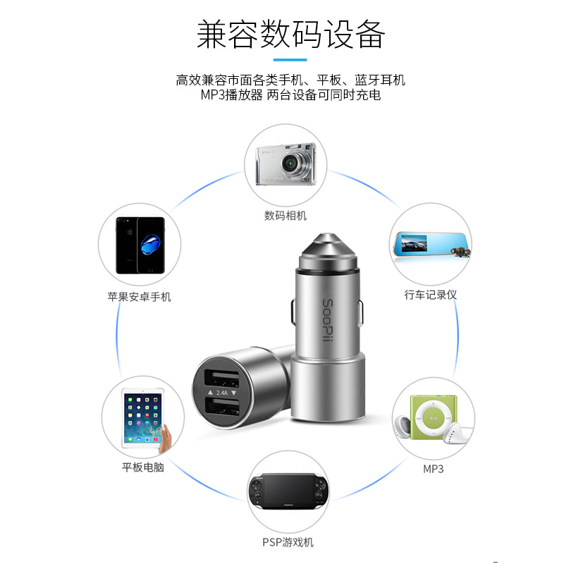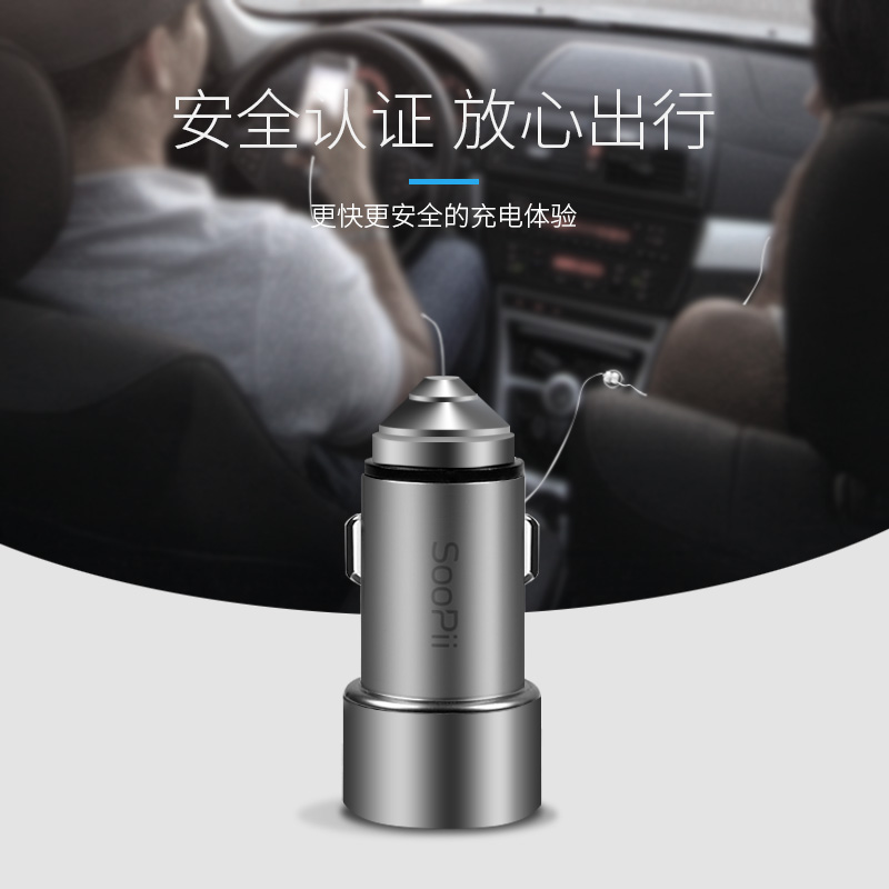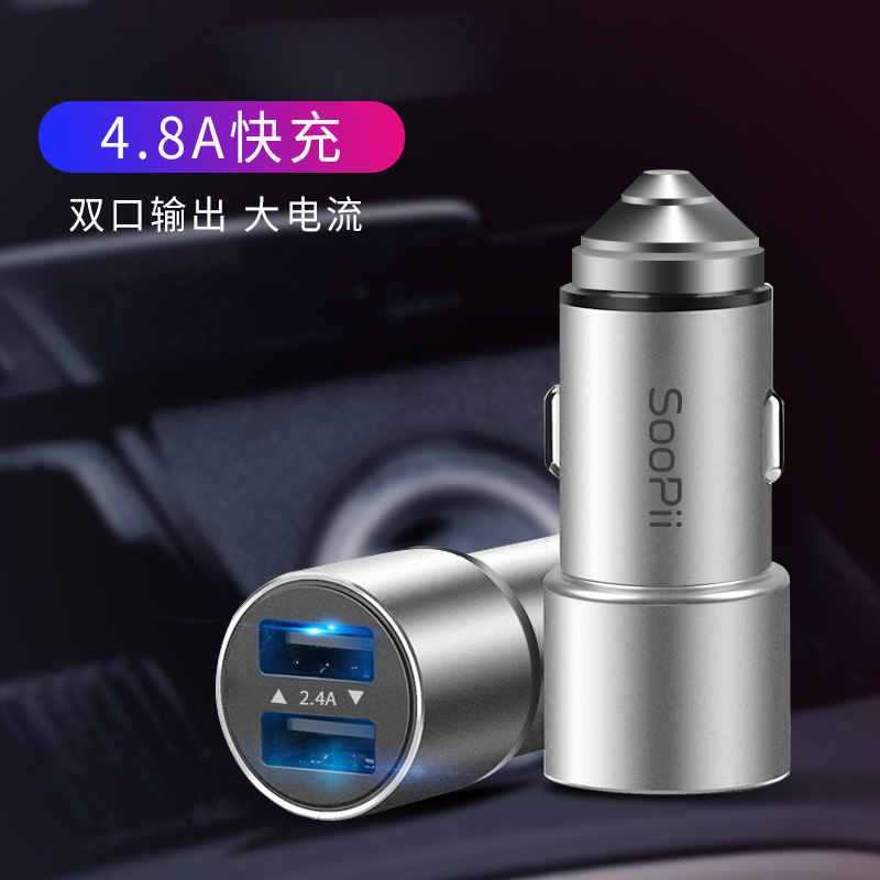 商品名称:soopii cc06双USB高速4.8a车充金属充电器苹果华为小米oppo手机快速充电