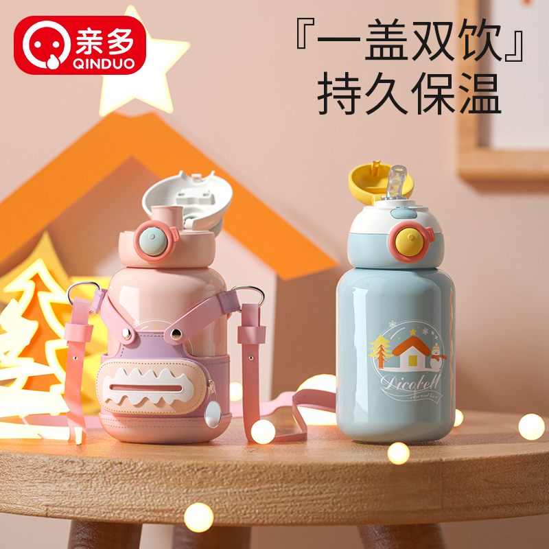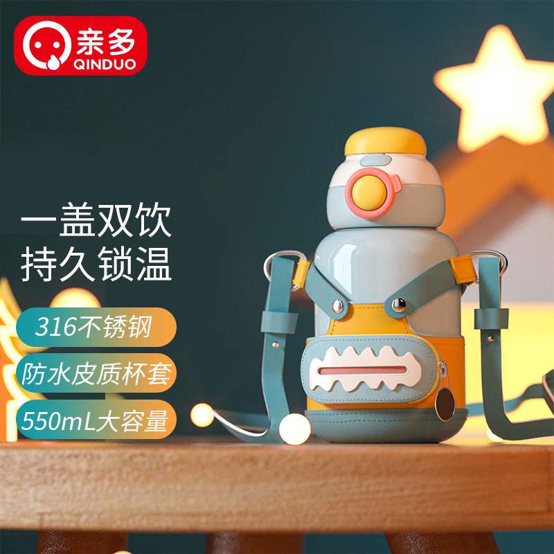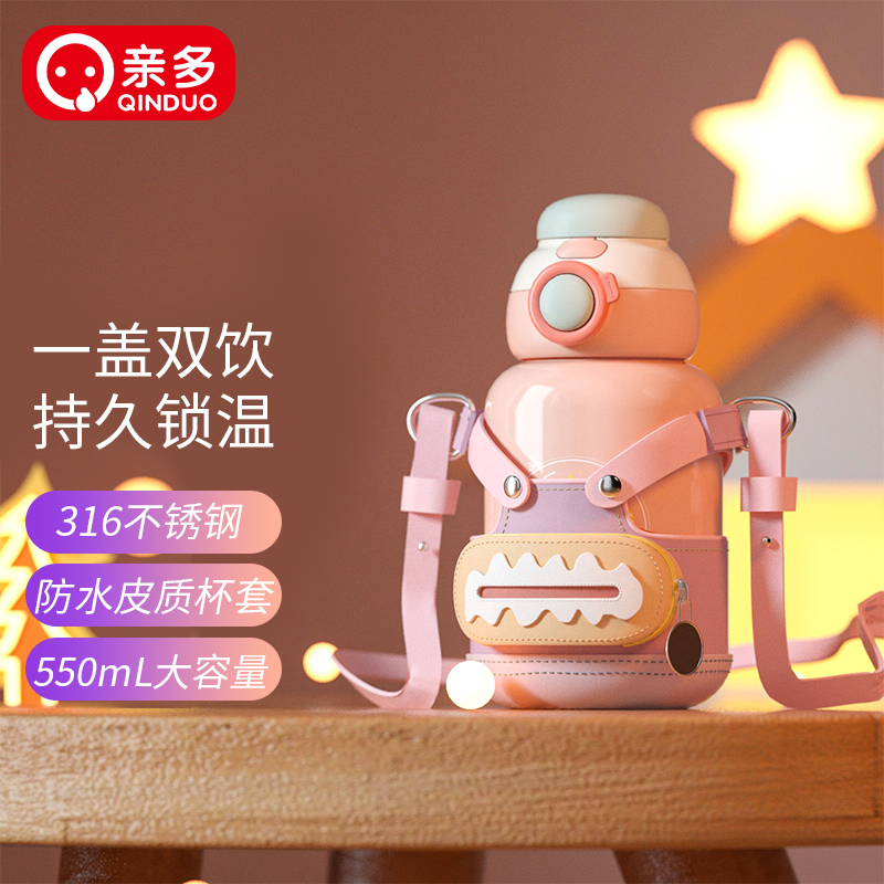 商品名称:亲多 550ml欧仔双饮316不锈钢双饮背带保温杯QD4067