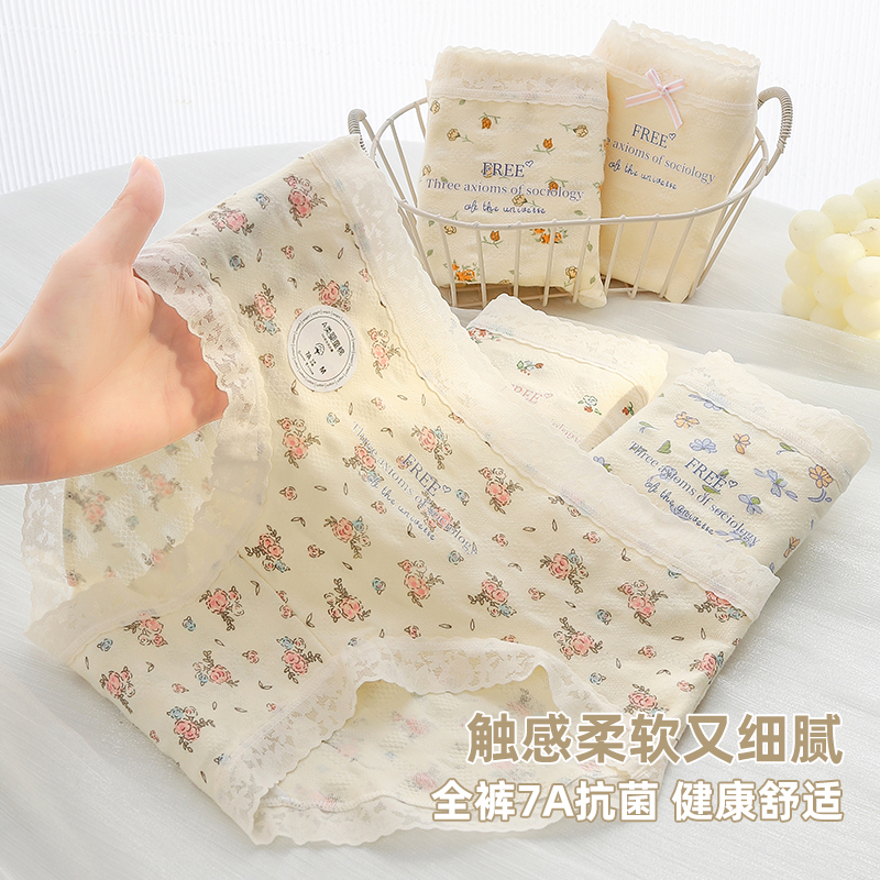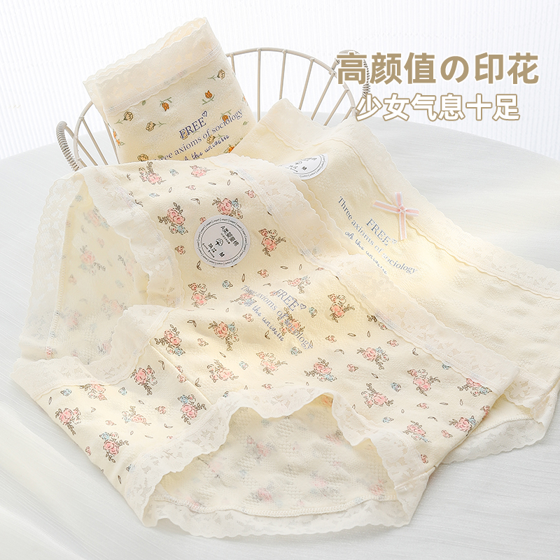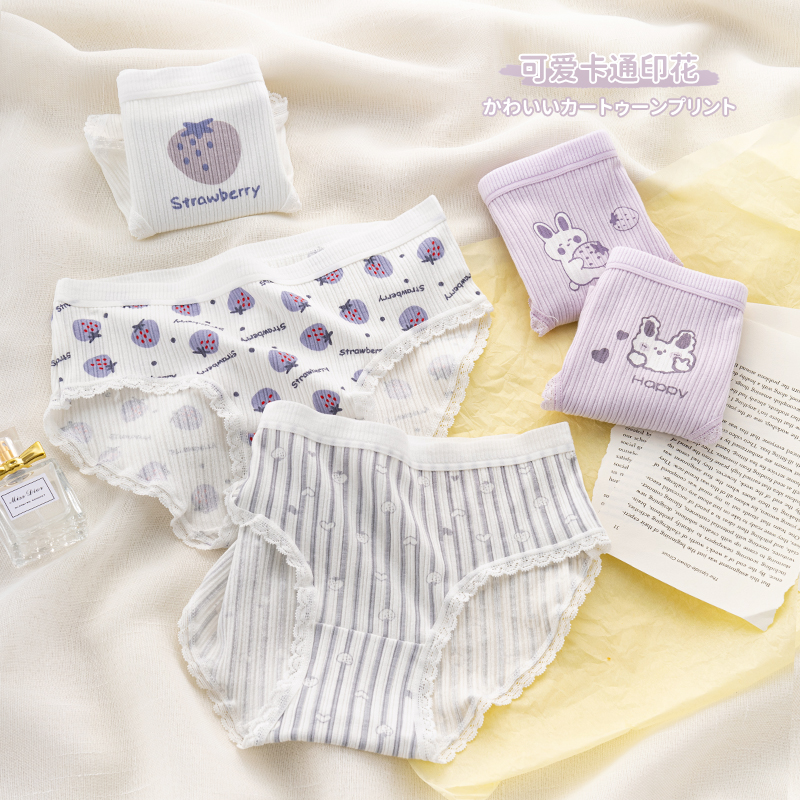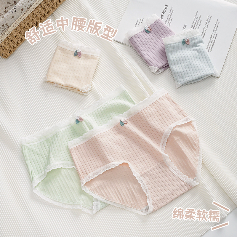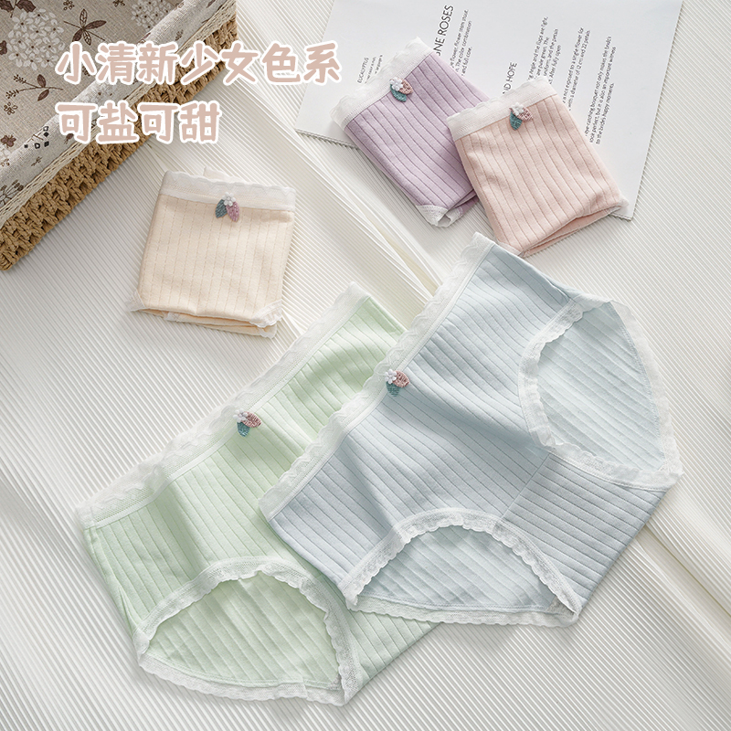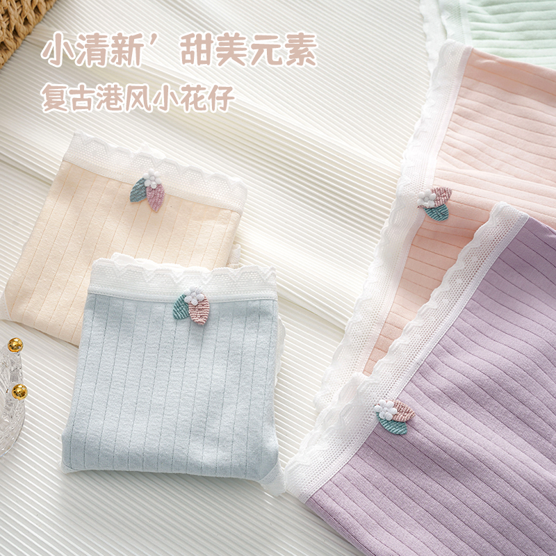 草本二四 女生内裤 甜美少女系列 H189# 3条装 纯棉亲肤 高弹不勒腰