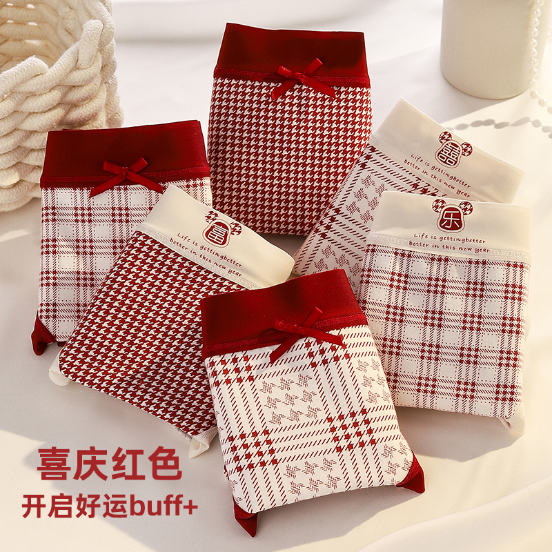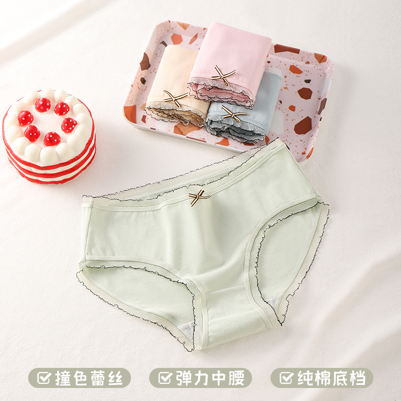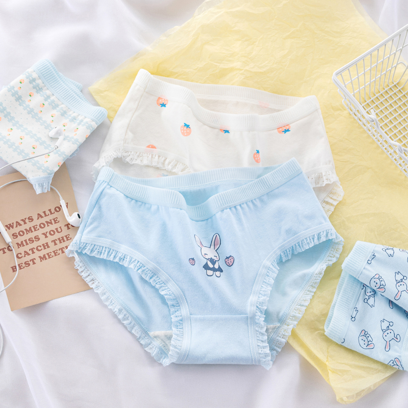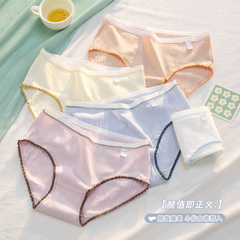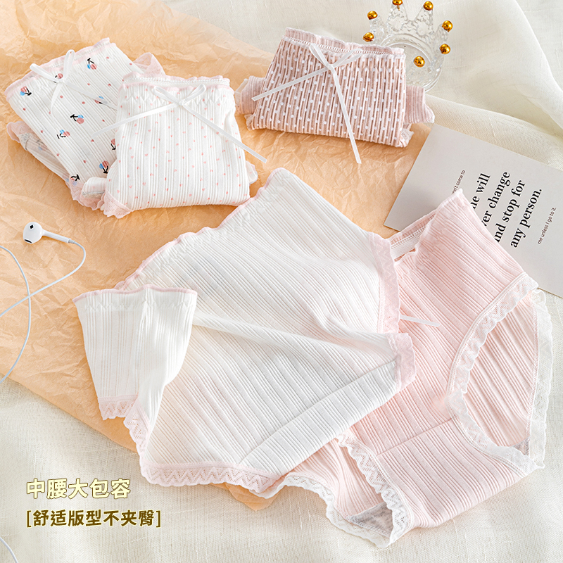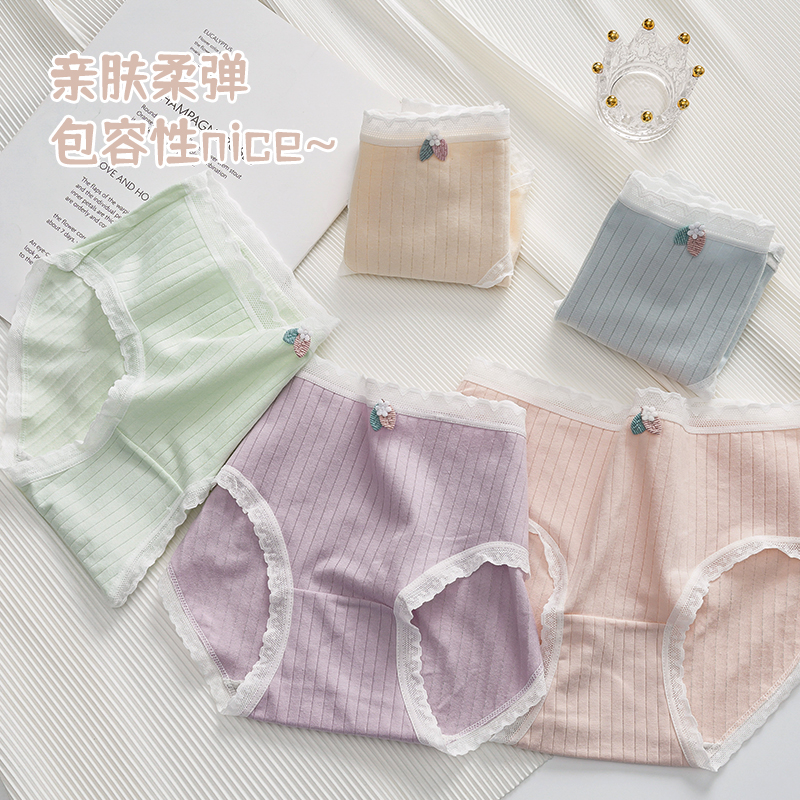 草本二四 女生内裤 甜美少女系列 H189# 3条装 纯棉亲肤 高弹不勒腰