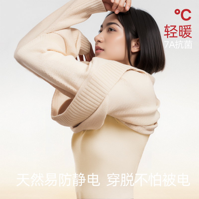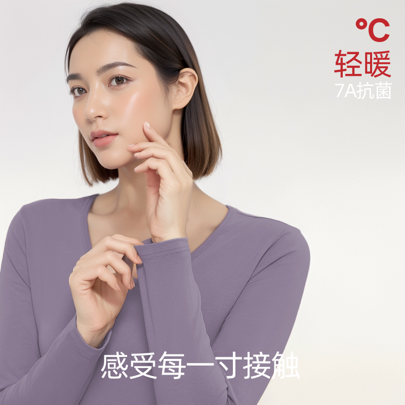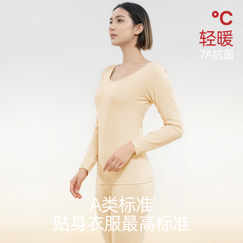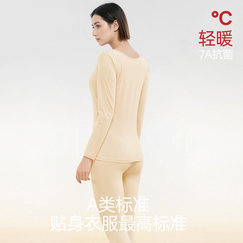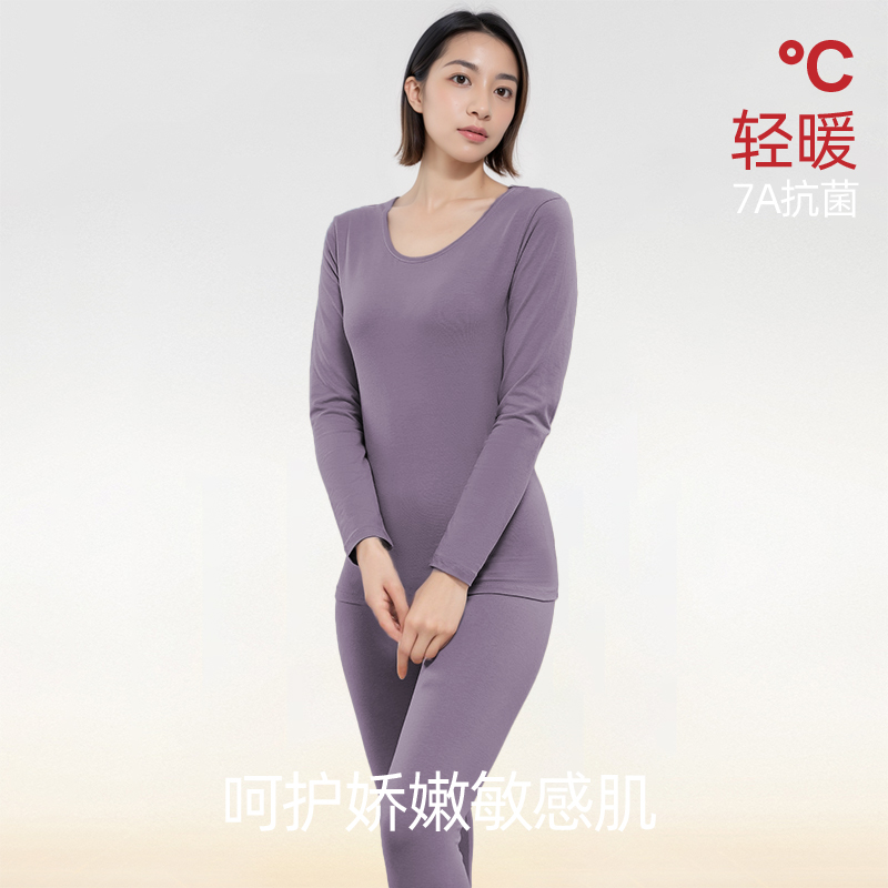 草本二四 女士新疆棉A类柔软高弹力抗菌吸湿排汗母婴级莱卡套装 3313