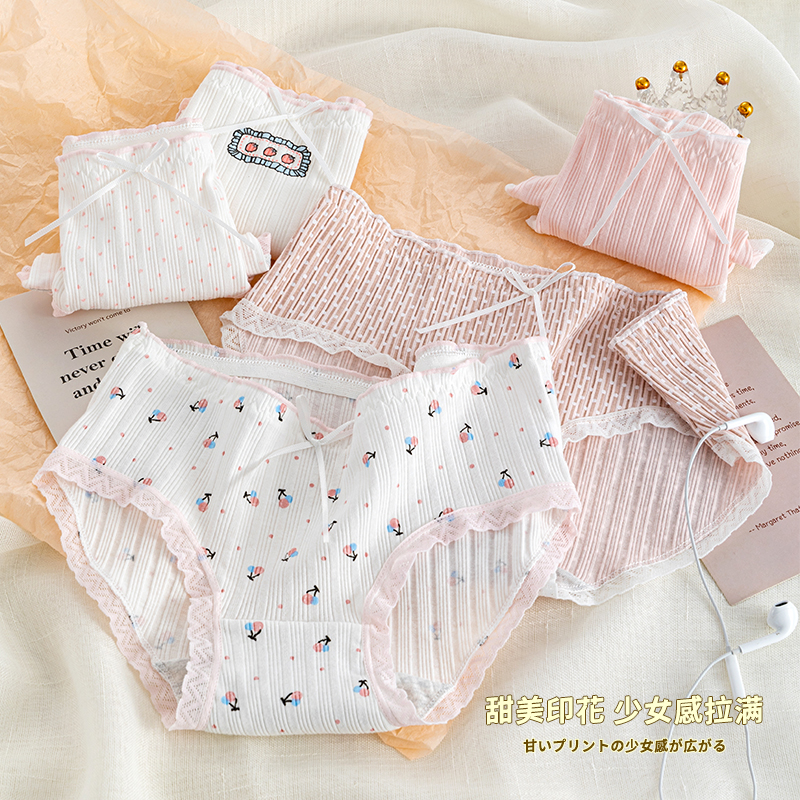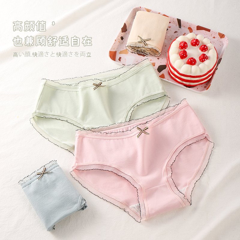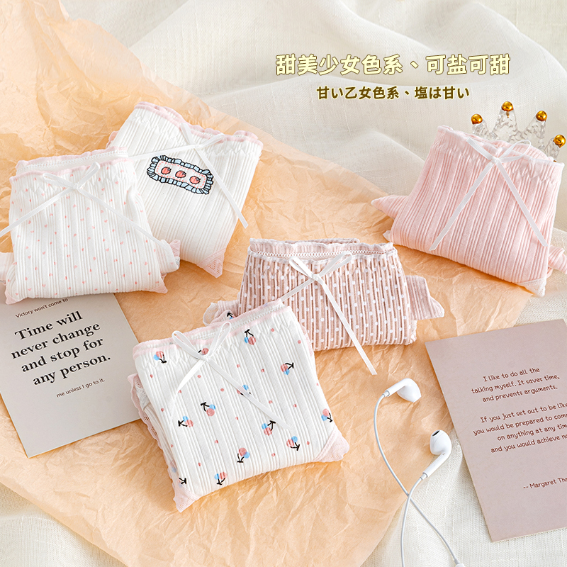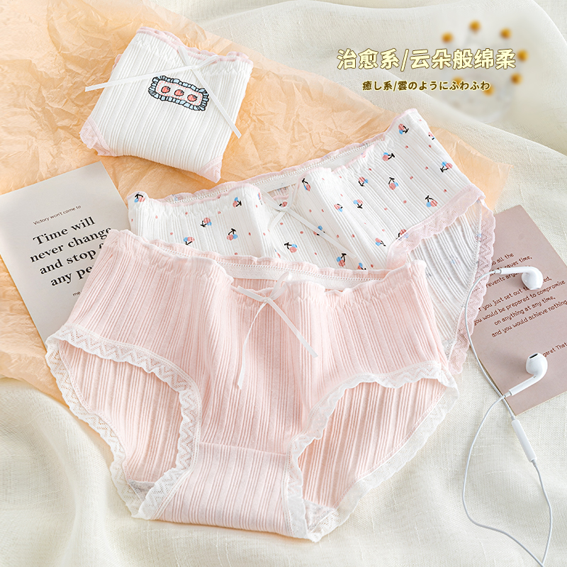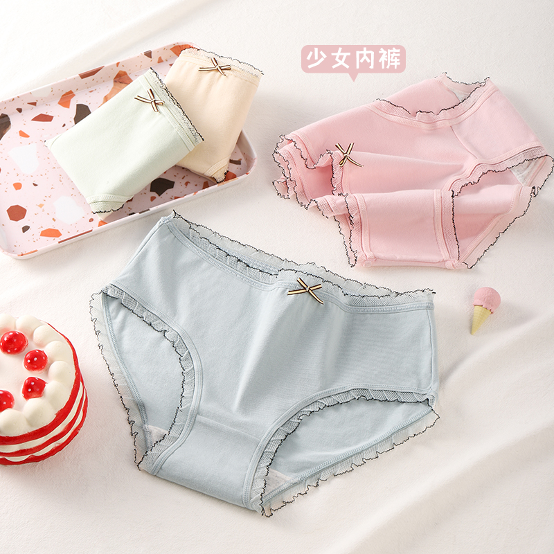 草本二四 女生内裤 甜美少女系列 H175# 三条装 纯棉亲肤 高弹不勒腰