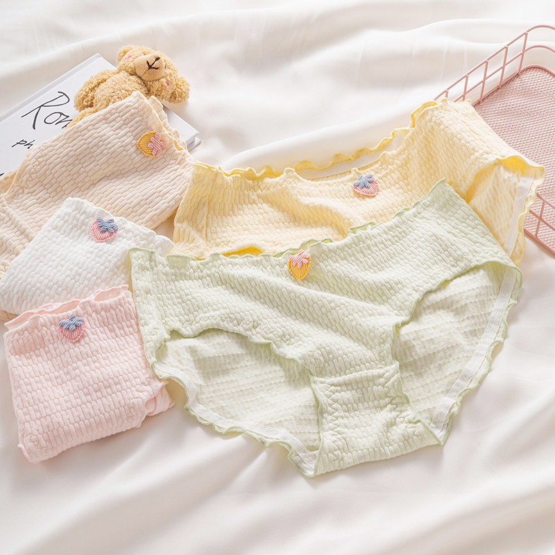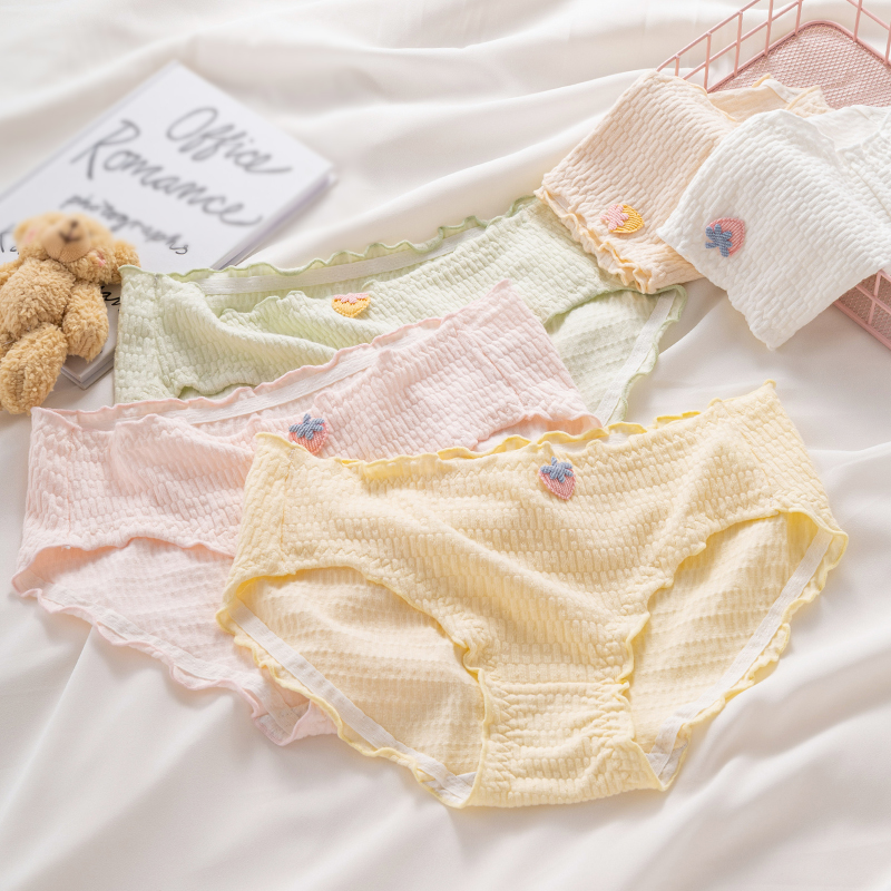 草本二四 日系可爱绿色牛油果牛奶纯棉中腰透气高弹力印花内裤 H108