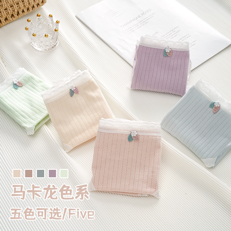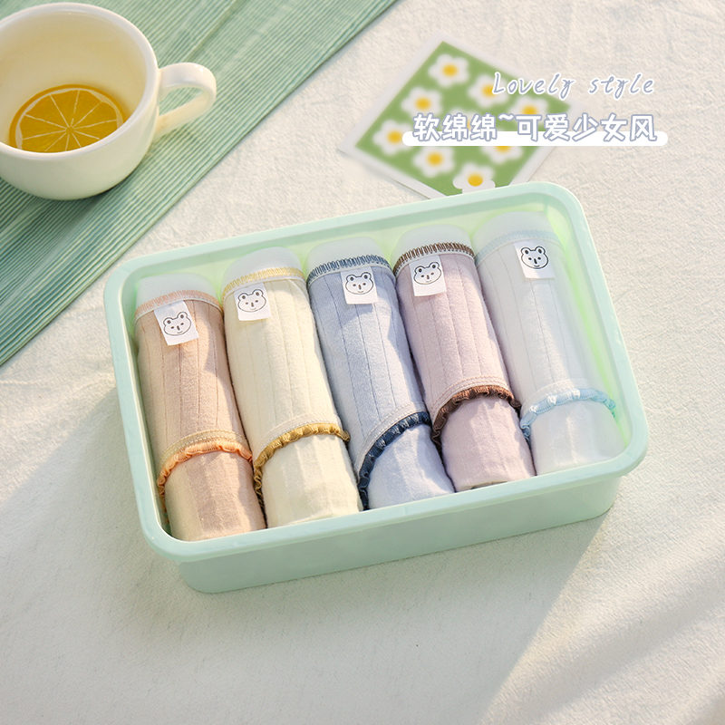 草本二四 女生内裤 甜美少女系列 H175# 5条装 纯棉亲肤 高弹不勒腰