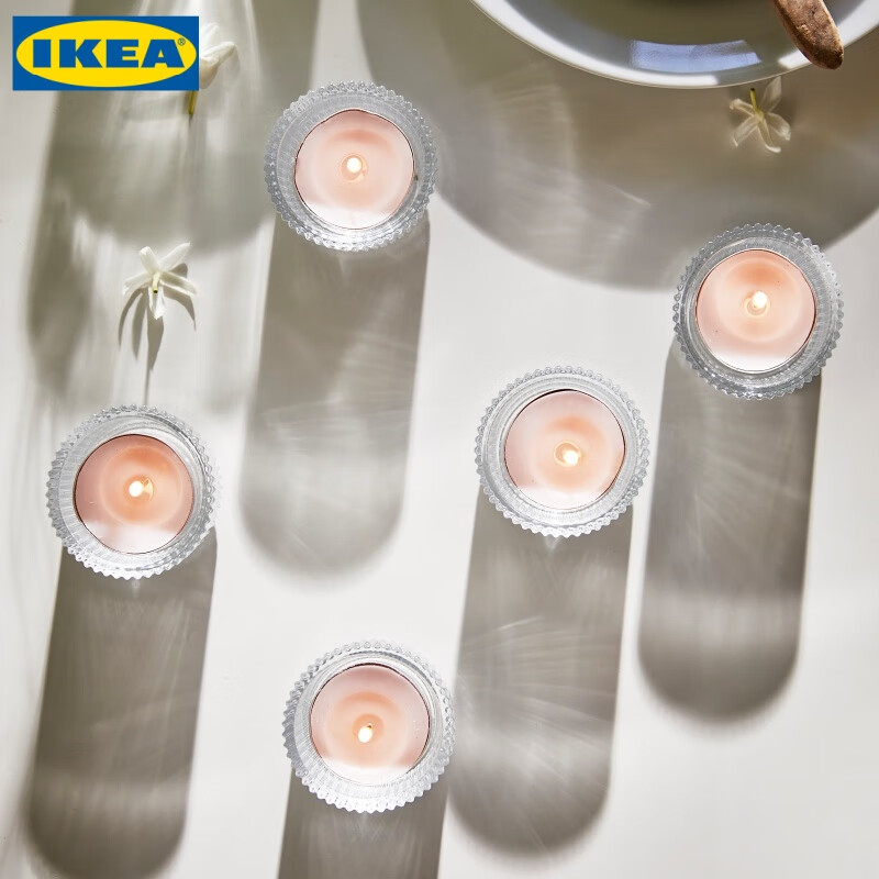 宜家 IKEA LUGNARE卢纳勒香味小圆蜡烛 茉莉花/粉红色3.5小时*2盒