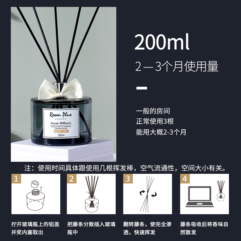 ROOM PLUS隆帕斯五星级酒店无火香薰室内持久留香卧室房间香氛礼物厕所空气清新剂 栀子花香