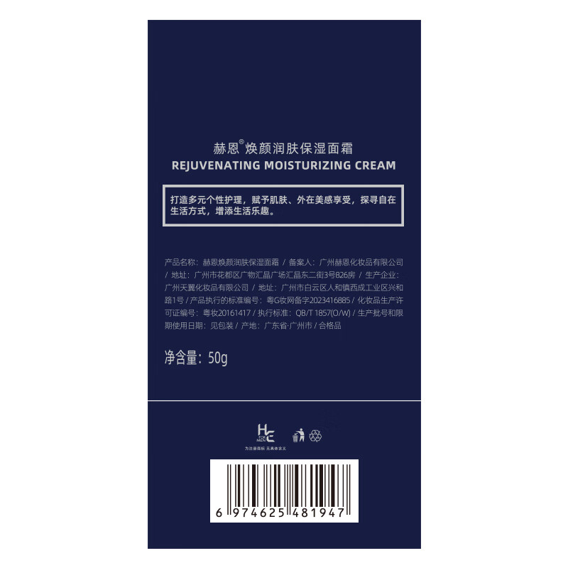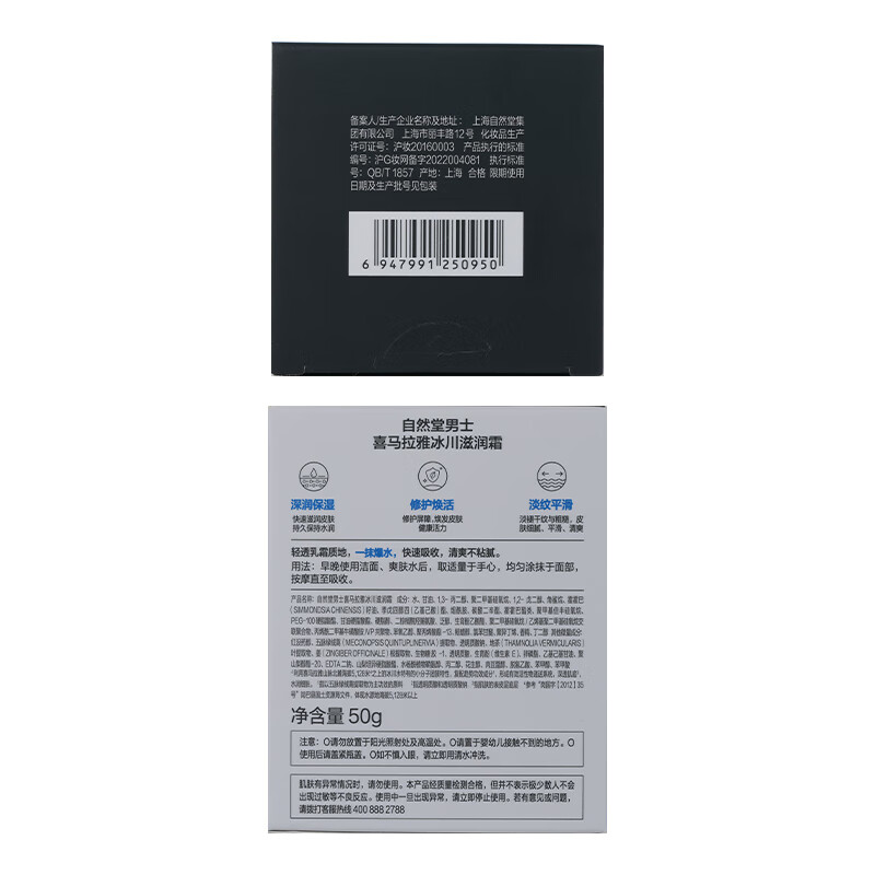 赫恩(H&E)男士焕颜保湿补水面霜男50g清爽锁水嫩肤乳液护肤品男