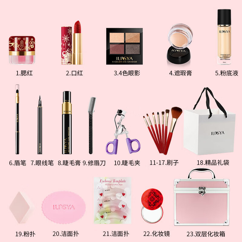 ILISYA【约会妆礼物】化妆品彩妆套装初学者节日礼物送女友老婆 24件套