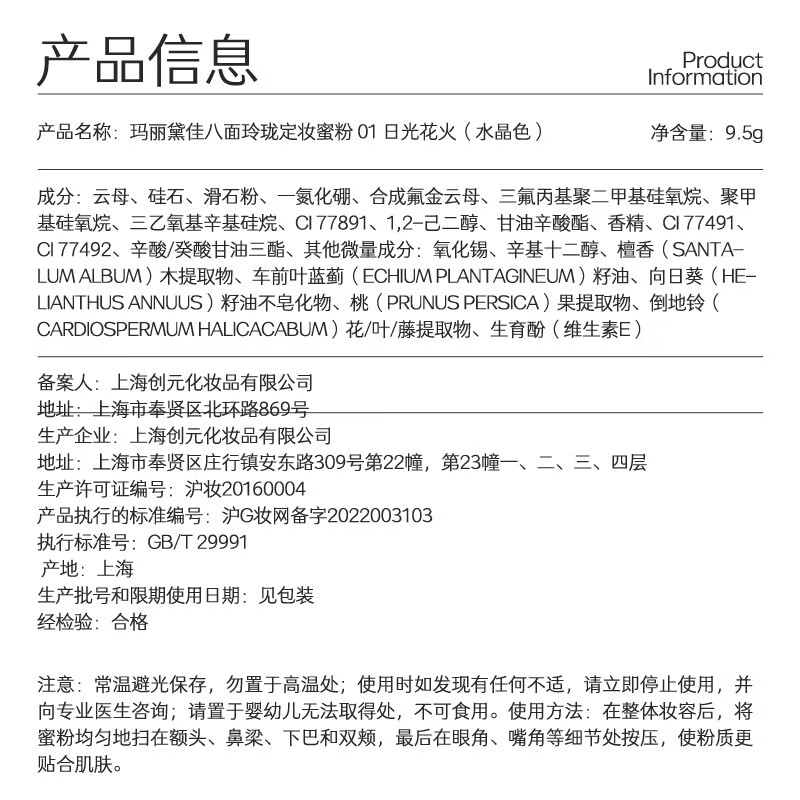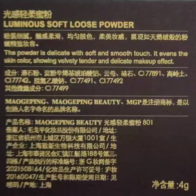 毛戈平光感黑曜羽翼蜜粉801透明色8g散粉定妆粉饼控油生日礼物送女友